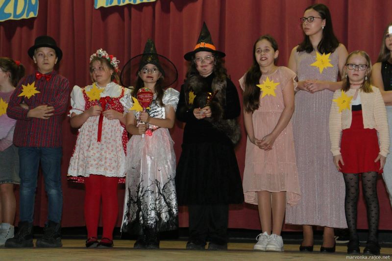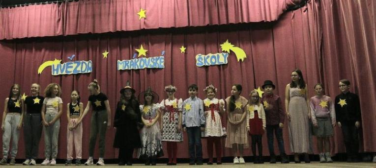Nechat zazářit své mladší spolužáky, dát jim možnost ukázat svůj talent a um - to byl hlavní záměr žáků 9. třídy. Zorganizovali casting, vybrali nejšikovnější, nejnadanější kamarády a na konci února uspořádali talentovou soutěž. Pak už jsme všichni v Kulturním domě v Mrákově žasli, protože se tančilo, zpívalo, stepovalo, kouzlilo, hrálo na nejrůznější hudební nástroje. Prostě každý parádně zazářil! A nejen soutěžící, ale i moderátoři a další účinkující. Na závěr mezi všemi propukla nefalšovaná radost, protože byla vyhlášena afterparty.