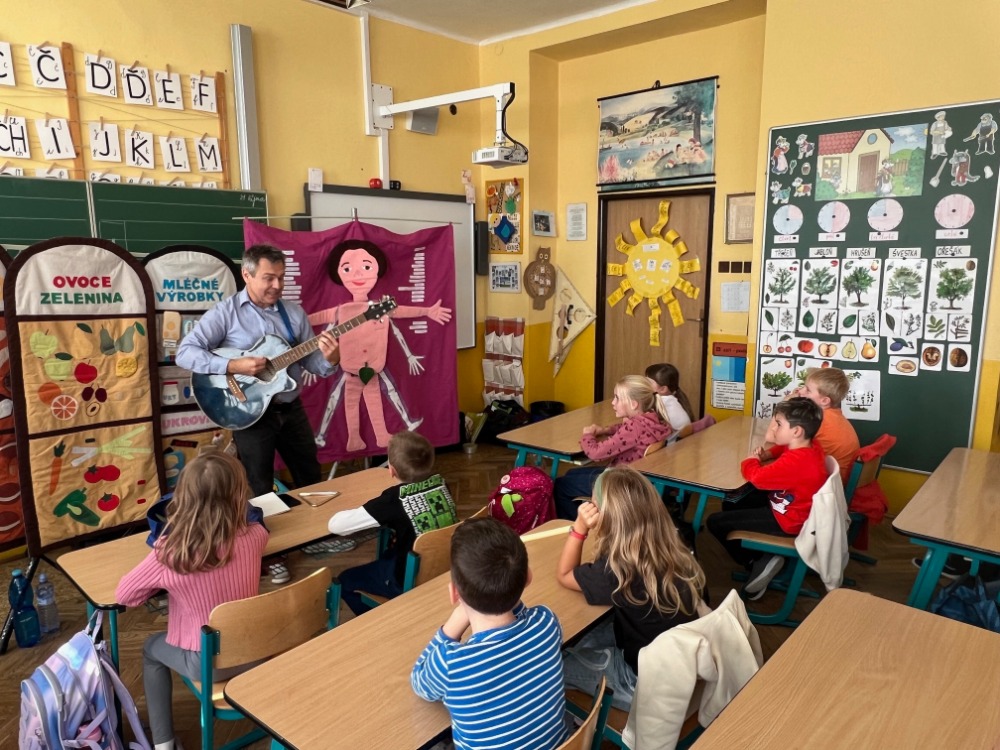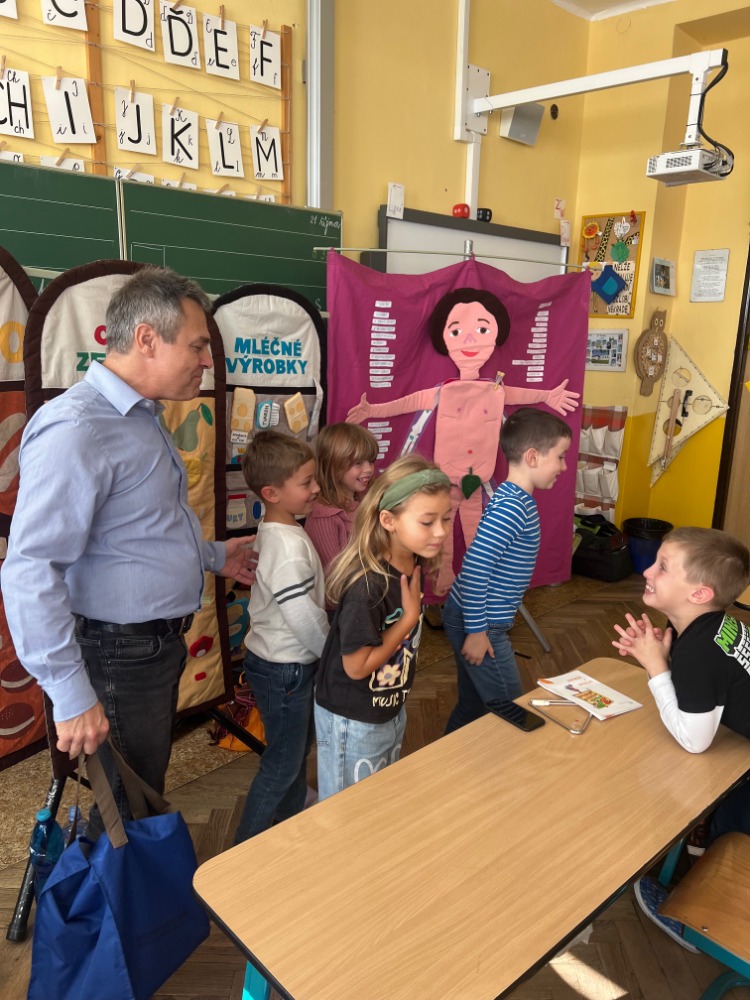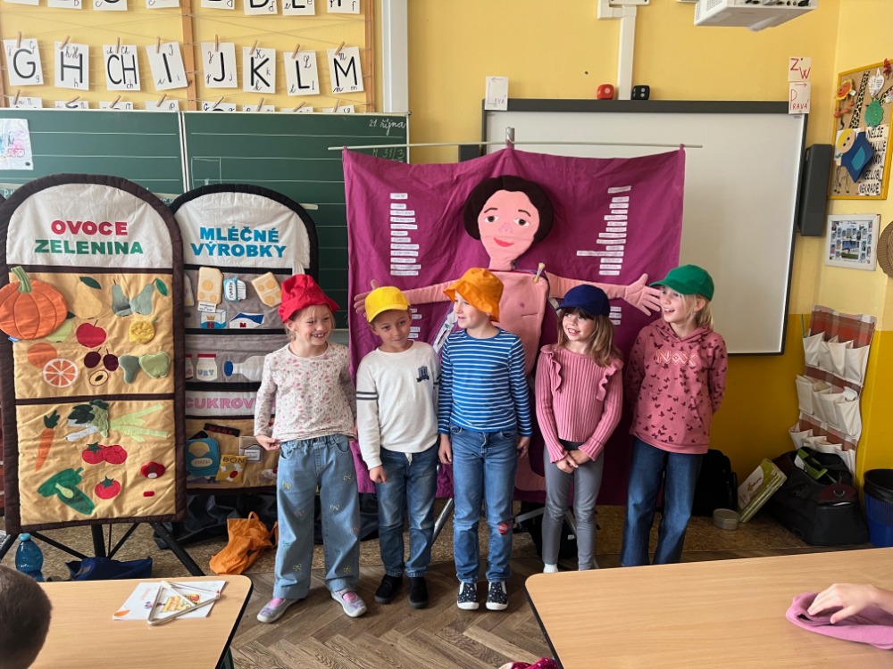 Měli jsme ve 2. třídě přednášku o zdravém stravování v rámci pravidla 3P – pestře, přiměřeně, pravidelně. Dostali jsme návod, co jíst, co je zdravé a kolikrát denně jíst. Dozvěděli jsme se o látkové výměně a základních živinách. Zajímavou částí byly nápoje zdravé a nezdravé, kolik denně vypít, jak nakupovat potraviny a jak s nimi zacházet. Za odměnu, protože jsme velmi pěkně pracovali, dostal každý druhák pracovní sešit.