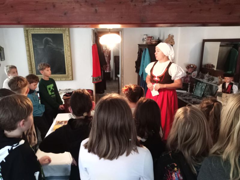 Dne 20. 10. 2025 žáci třetí třídy navštívili dům „U Bílků“. Jedná se o nejstarší dům v Mrákově, kterému zůstala jeho původní krása. Děti se dozvěděly několik informací o obci Mrákov a její historii. Seznámily se s historií domu, s informacemi o významných obyvatelích domu a především zjistily, jak se v takovém domě bydlelo a žilo.