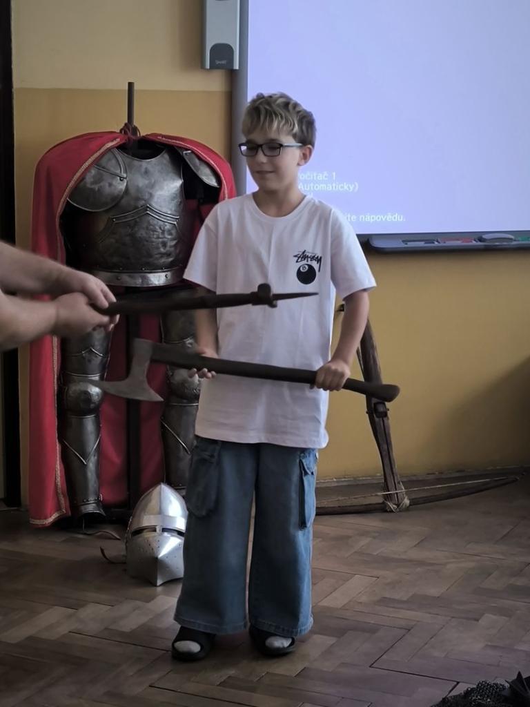 Hned v úterý proběhla třídnická hodina, při které jsme ve skupinách zkoušeli, jak dokážeme spolupracovat. Nebylo to vůbec nic jednoduchého, ale několik obrázků společnými silami nakonec vzniklo. Ve čtvrtek bylo ideální počasí na sáňkování a bobování, proto jsme hodinu tělocviku strávili na kopci. Odnesly to „jen“ dvoje boby. V pátek nás čekala přednáška cestovatele Tomáše Kubeše, který nám vyprávěl o zvycích a tradicích v průběhu roku napříč Českou republikou. Lucky ani Perchtu bychom opravdu nechtěli potkat. Nakonec další pondělí proběhla přednáška historika Libora Marka na téma Středověk. Krásně jsme se připravili na nadcházející povídání o dějinách na našem území. Děti byly nadšené, protože si mohly mnoho věcí na vlastní kůži vyzkoušet. Všechny akce jsme si užili naplno.