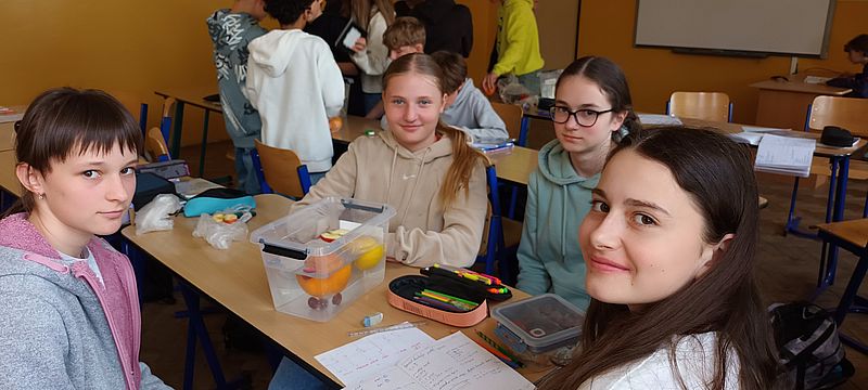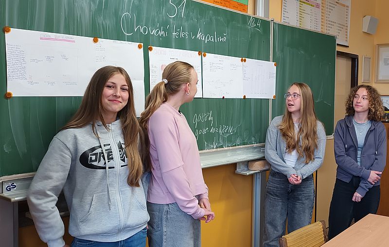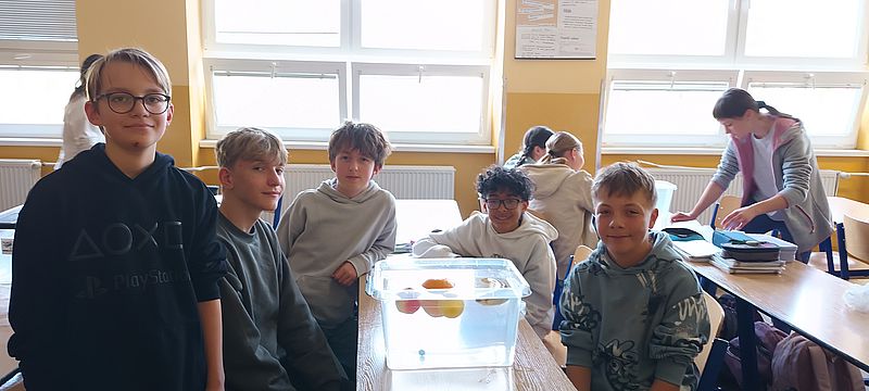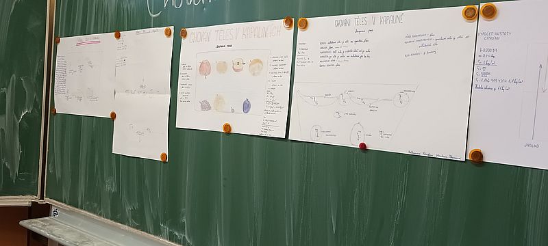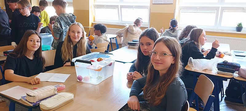 Ve skupinách zkoumali, jak se ovoce a zelenina chovají v kapalinách (ve vodě). Počítali vztlakovou i gravitační sílu a určovali hustotu jednotlivých druhů ovoce. Během pokusů přemýšleli nad příčinami - například: proč sladká borůvka leží na dně nádoby a kyselá se vznáší na hladině? Závěry byly velmi různé. Některé kousky plavaly, jiné se potopily – a o překvapení nebyla nouze. Učení vlastním zážitkem žáky prostě baví!